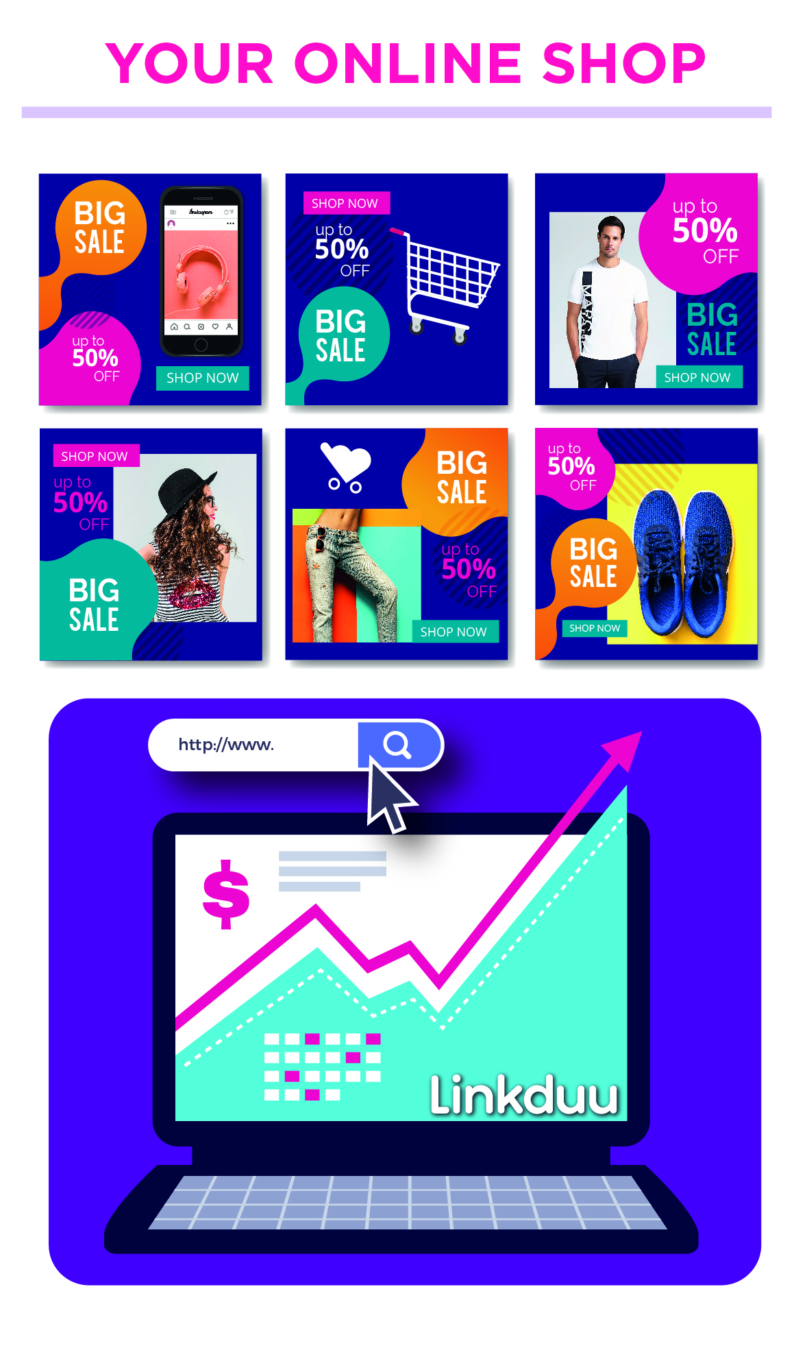 Linkduu concentrates all your important content for the world to discover it! Through our platform: Products, videos, promotions, virtual store, website, publications, social media